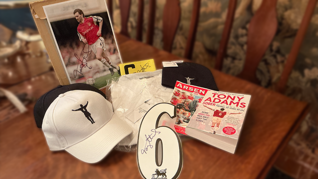 🎁 An assortment of signed football ‘gooner’ goodies from Nacoa patron Tony Adams